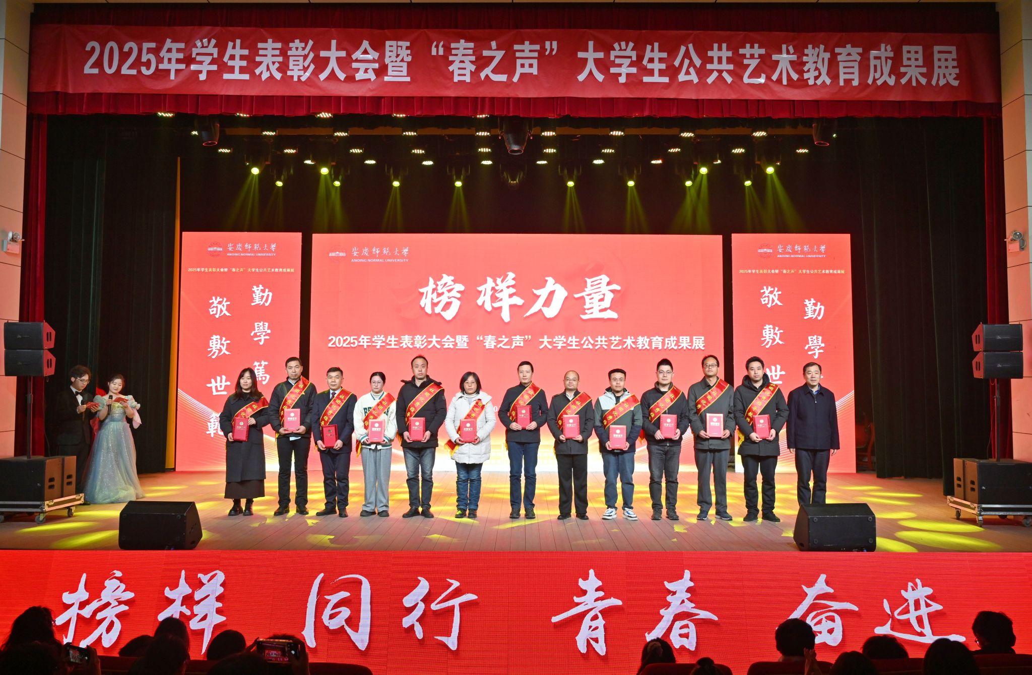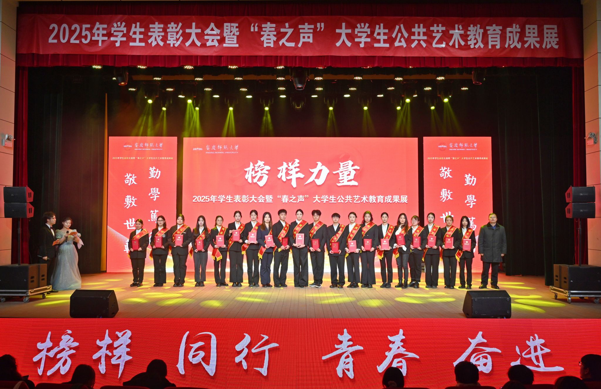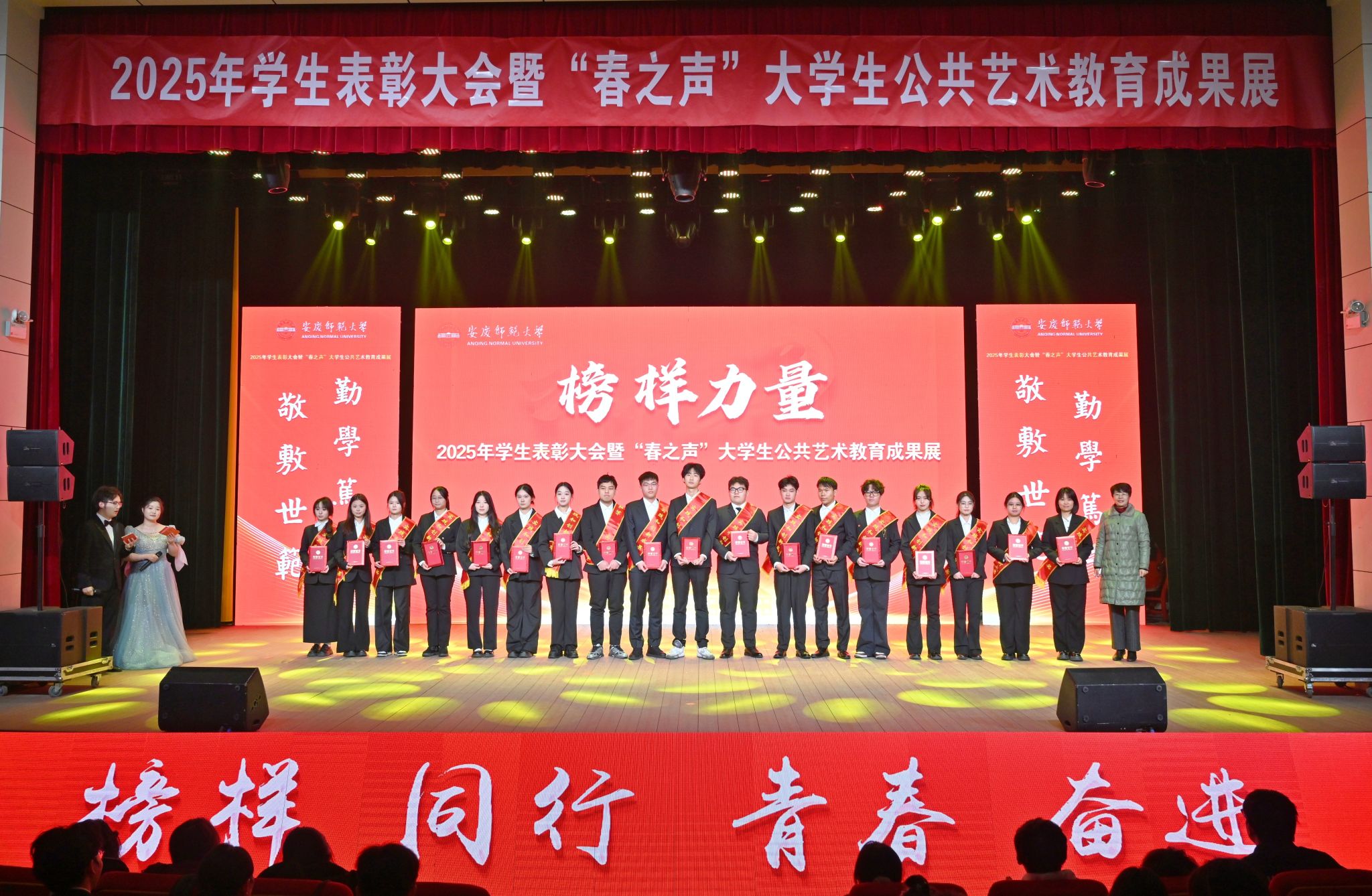 12月22日,学校举办2025年学生表彰大会暨“春之声”大学生公共艺术教育成果展。校党政领导李福华、彭凤莲、崔明、吴琼、秦朗、徐晓宁、张红飞、计裕人出席活动。各学院党政班子成员、党群工作部门负责人、获奖师生代表、全体辅导员及200余名学生代表参加大会。