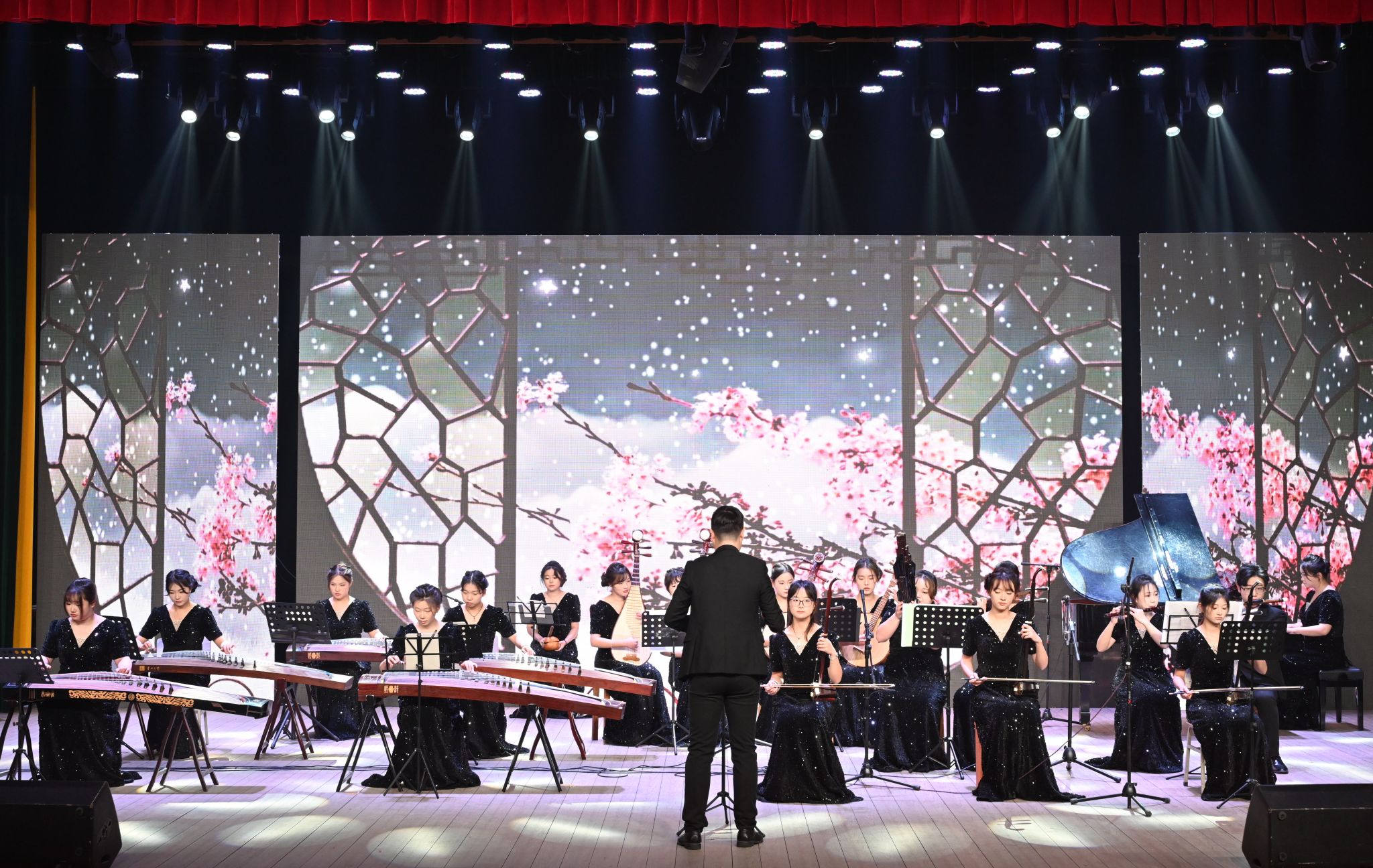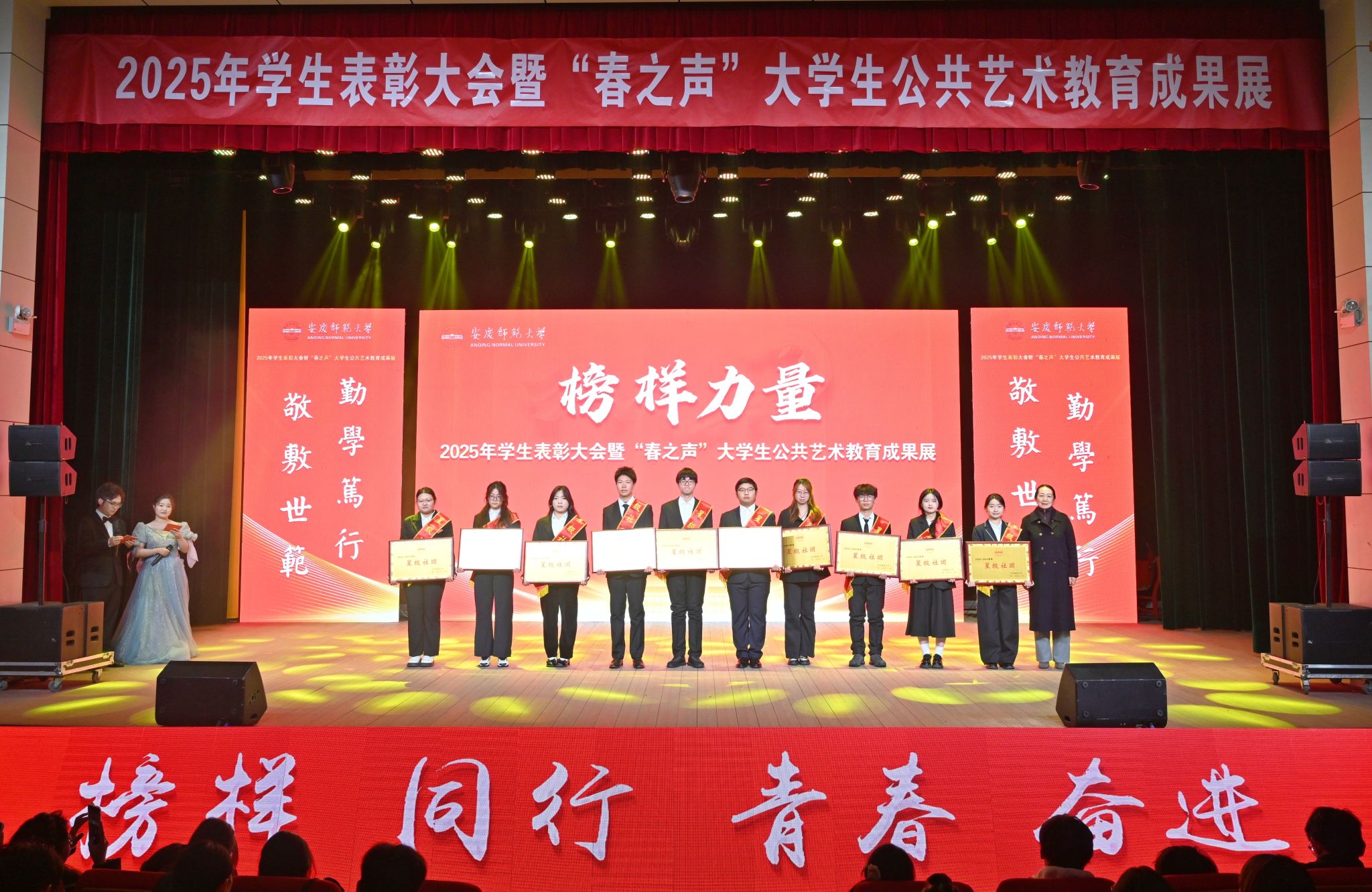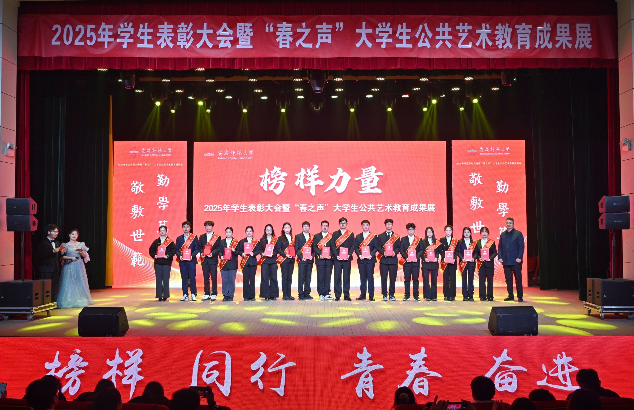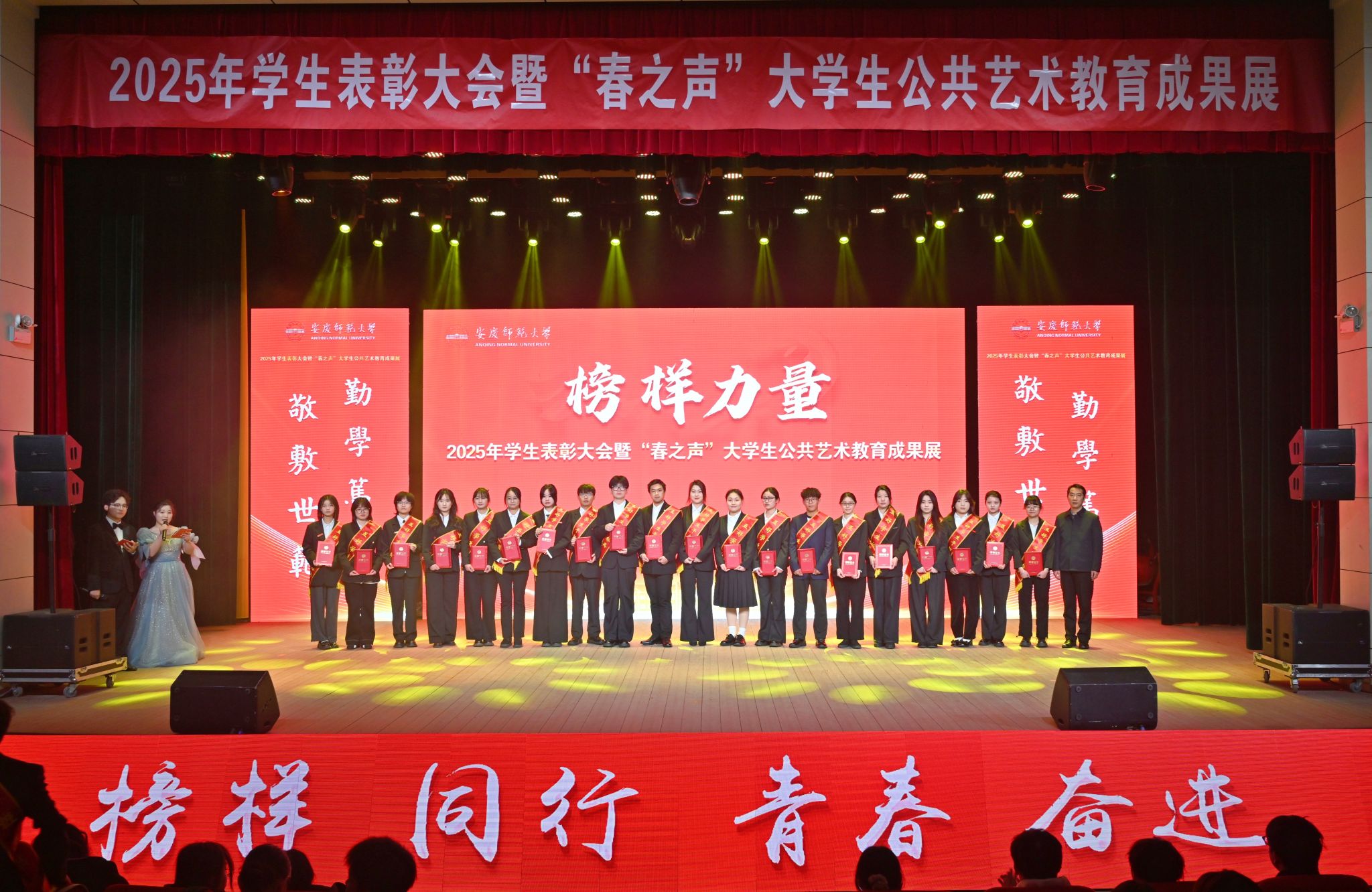 12月22日,学校举办2025年学生表彰大会暨“春之声”大学生公共艺术教育成果展。校党政领导李福华、彭凤莲、崔明、吴琼、秦朗、徐晓宁、张红飞、计裕人出席活动。各学院党政班子成员、党群工作部门负责人、获奖师生代表、全体辅导员及200余名学生代表参加大会。