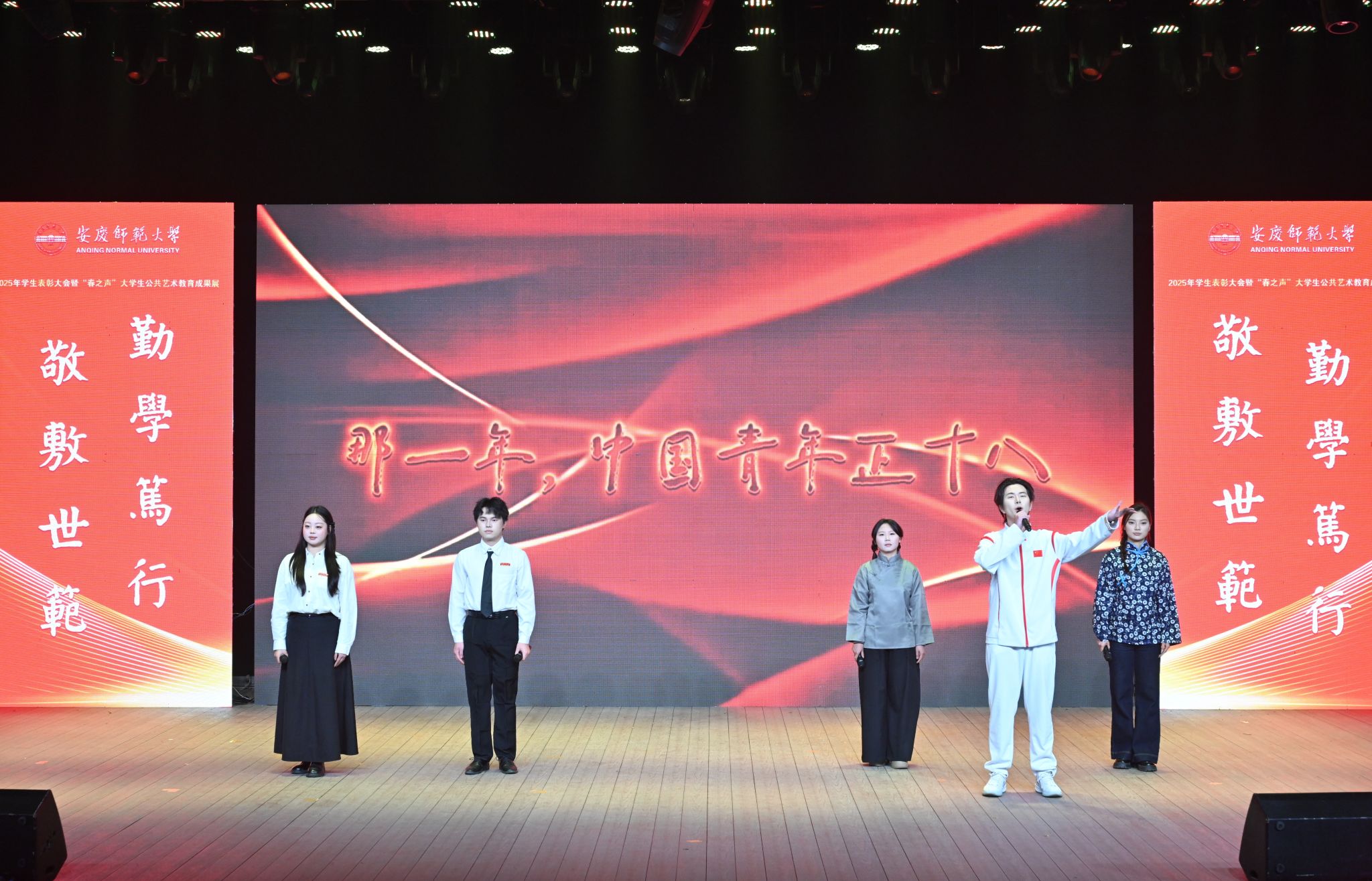 大会现场,学生以精彩的节目演出汇报公共艺术教育成果。街舞俱乐部演出的歌曲《你最最最重要》,以动感节拍搭配利落舞姿,尽显青年学子自信昂扬的蓬勃朝气;中国舞俱乐部出演的舞蹈《莲鼓越歌行》,循着采莲女的生活轨迹与灵动形象,勾勒出古代越地女子踏歌起舞的诗意画卷;校主持队的朗诵《那一年,中国青年正十八》,以声传情,诠释出不同时代里个人成长与时代脉搏同频共振的深刻真谛;音乐学院选送的民乐合唱《花好月圆》,深切表达了中华优秀传统文化中忠诚孝悌、挚爱相守的价值追求;音乐学院原创舞蹈《冰凌花》,借冰凌破寒绽放的意象,礼赞坚韧不拔、奋勇争先的奋斗精神;黄梅剧艺术学院学子带来经典剧目《闹花灯》,以王小六夫妇观灯的鲜活场景,生动描摹出农人丰收后的喜乐年华与淳朴情趣;体育学院龙狮队表演的《龙狮逐彩》,鼓点铿锵、龙狮腾跃,尽显自强不息的奋斗精神和昂扬向上的青春风采。