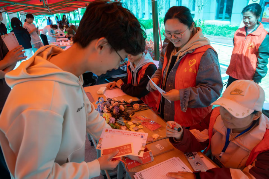 活动中,学生们可领取“集章卡”穿梭各展位,完成体验后收集印章,最终兑换公益纪念品。新闻学专业的汪雅君分享:“像逛游乐园一样轻松有趣,一边参与一边做公益,不知不觉就收获了温暖与感动。”